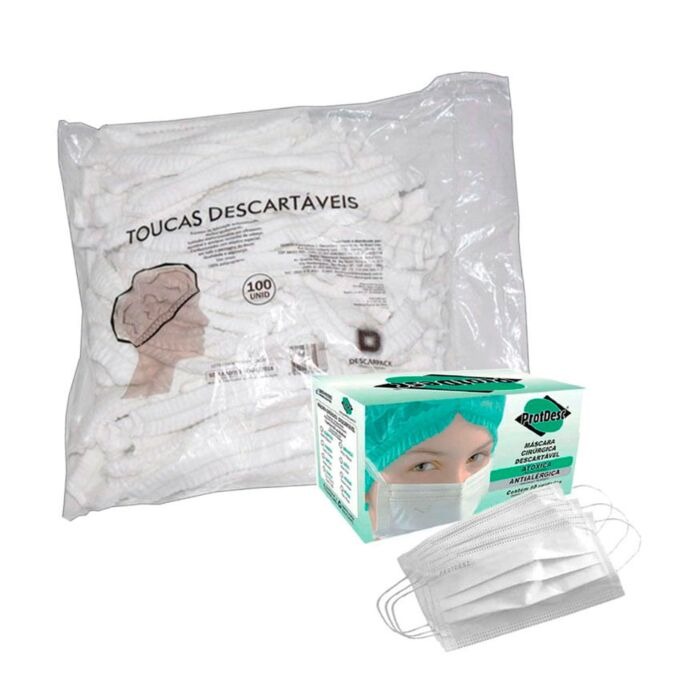 Combo Máscara Tripla Branca + Touca Sanfonada Branca