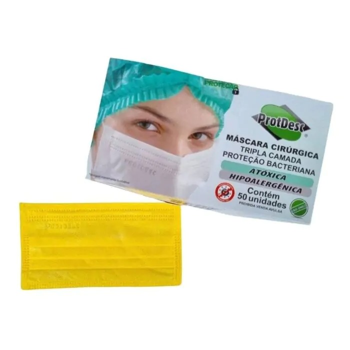Máscara Descartável Tripla C/50 Unidades Amarela – Protdesc