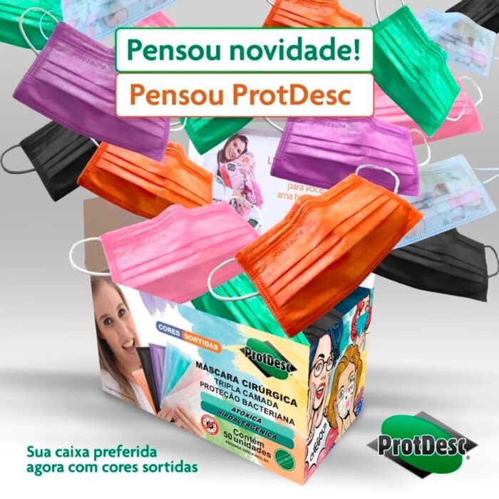 Máscara Descartável Tripla com Elástico – Colors Protdesc (50 unidades)