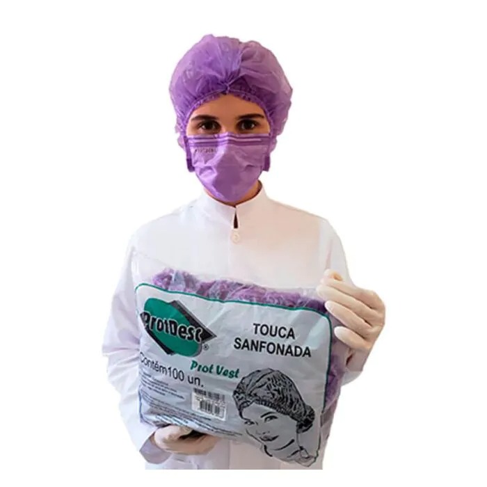A Touca Sanfonada Lilás da ProtDesc foi desenvolvida para oferecer proteção, conforto e segurança em ambientes que exigem higiene e assepsia constante.